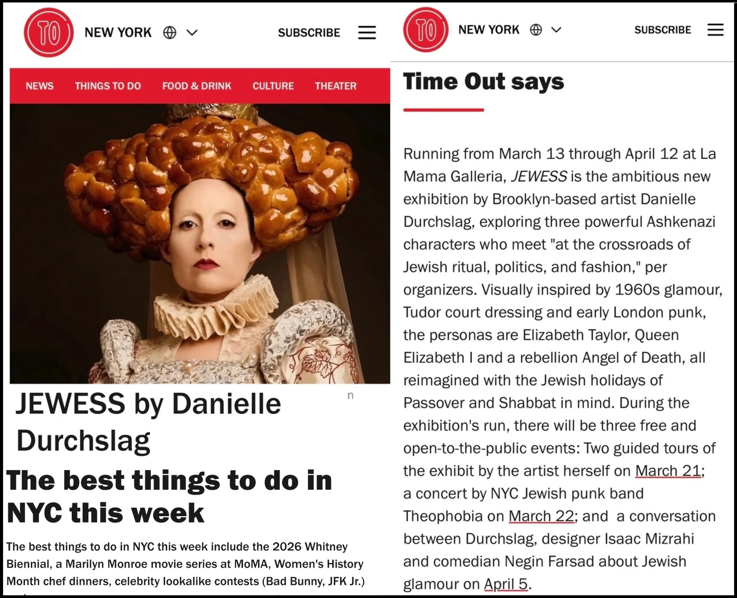 Time Out NY Recommends JEWESS as one of the best activities in NYC!