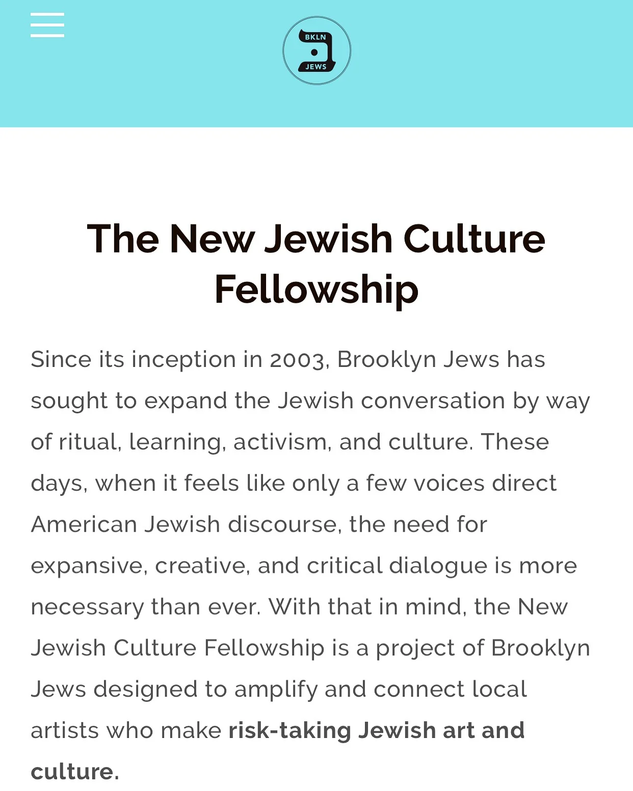 I’m so thrilled to share that I’ve been selected as one of six artists for the 2019/2020 cohort of the New Jewish Culture Fellowship!! NJCF provides support and community for artists making risk-taking Jewish arts and culture.