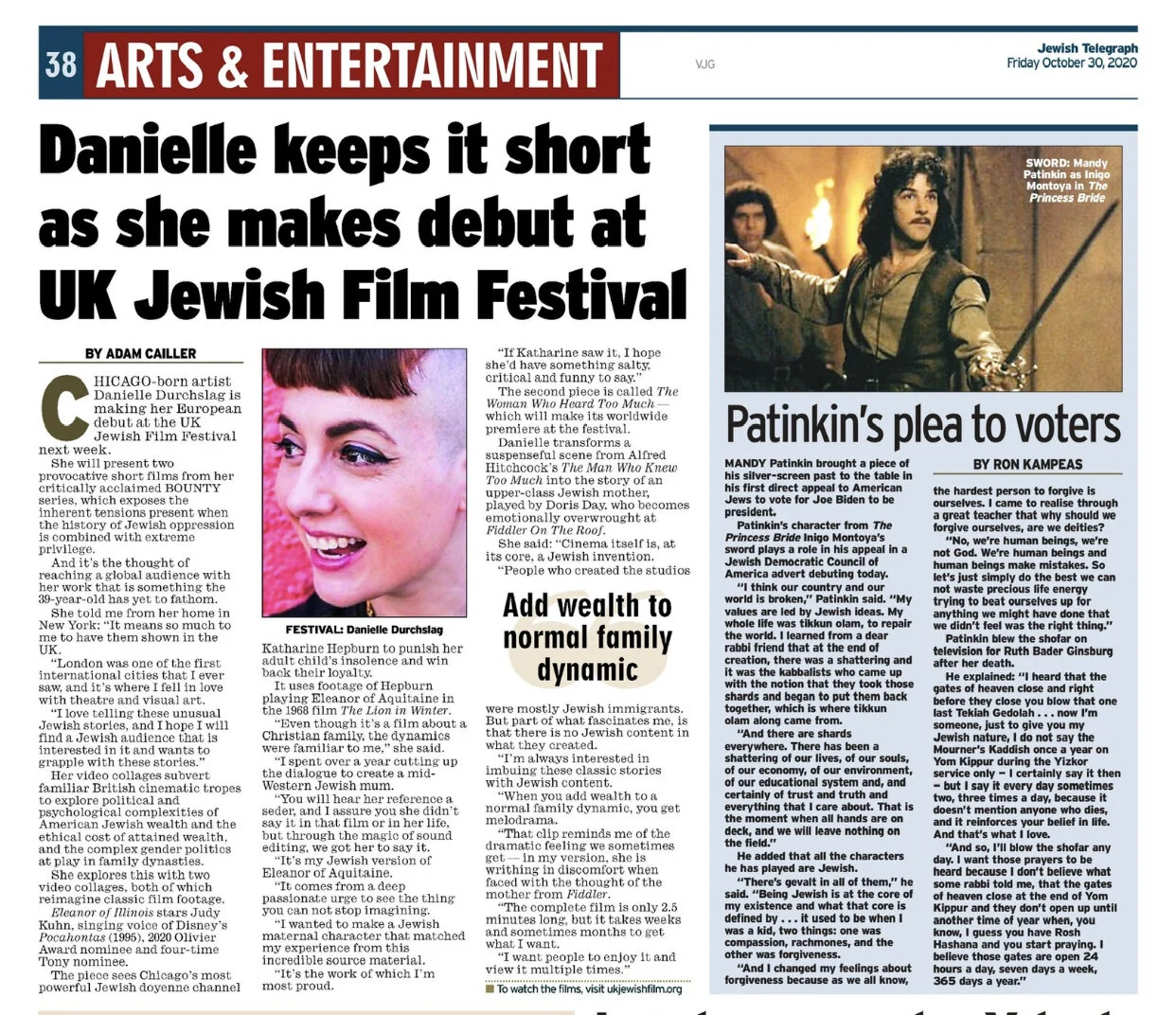 Friends I am finally, officially, in print, Mandy Patinkin adjacent. Many thanks to the UK’s Jewish Telegraph for this lovely feature! Just one week left for UK residents to watch 2 shorts from my BOUNTY series as part of the 2020 UK Jewish Film Festival.