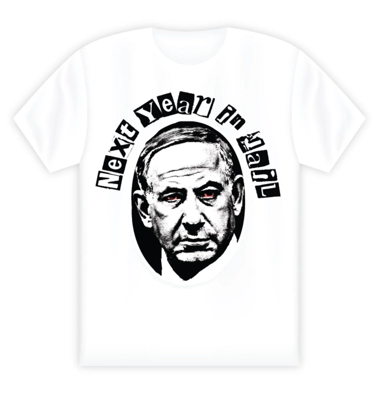 Want to rock a “Next Year in Jail” T-shirt yourself? Great news! Thanks to HEEB Media, you can now pre-order this shirt, in your preferred size. CLICK HERE to see the size options and grab yours! 70% of each purchase will go to the Palestinian Children’s Relief Fund, a wonderful NGO offering free medical care to injured and ill children in Gaza and the West Bank.