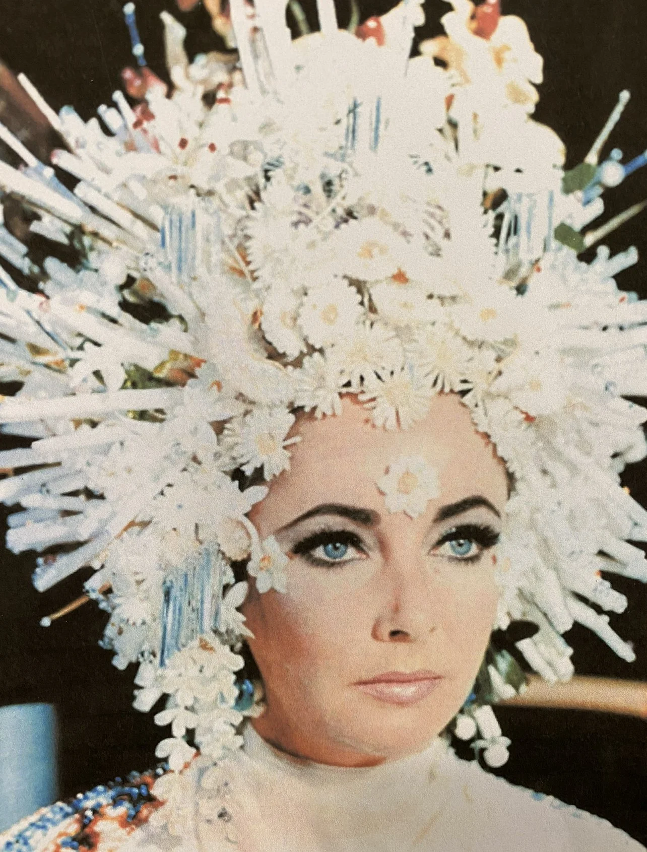 I took inspiration for this project from an iconic fashion headpiece, designed and created for Elizabeth Taylor (one of most glamorous Jews of all time), in 1967, by Alexandre de Paris, for the film “BOOM!”. The movie is a real stinker, but the hat, as you can see, is divine!: